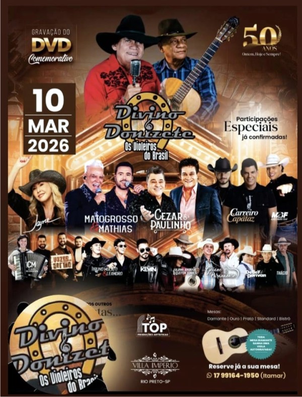 Vem aí a gravação do DVD comemorativo de 50 anos de Divino & Donizete –